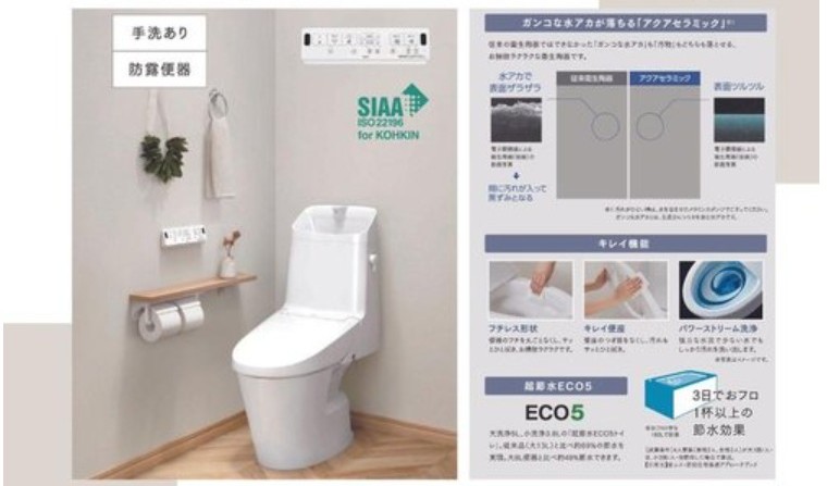 リクシルの「INAXベーシア」。従来の衛星陶器ではできなかった「ガンコな水アカ」も「汚物」もどちらも落とせる、お掃除ラクラクな衛星陶器です。