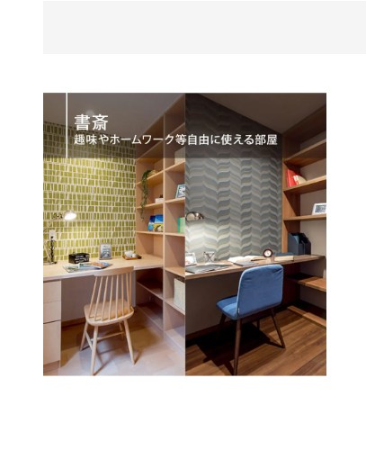 一人の静かな時間を確保し趣味や読書、またテレワークに 没頭できる暮らしを楽しむ贅沢な空間。
