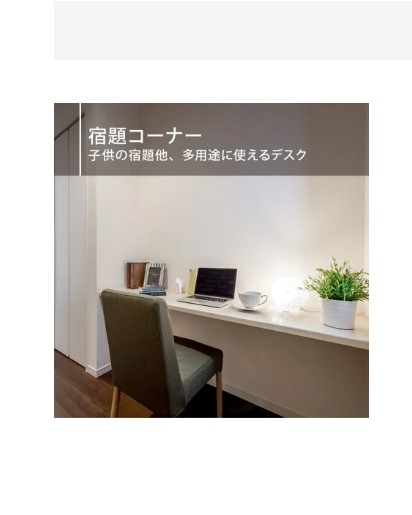 多目的に使えるカウンター付のファミリース ペース。個々に勉強するのではなく、お子様 の横に並び勉強が出来る場所として利用で きます。