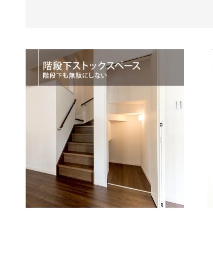 デッドスペースとなってしまう階段下のスペースを有効活用 した収納。掃除用具など生活用品の収納に役立ちます。